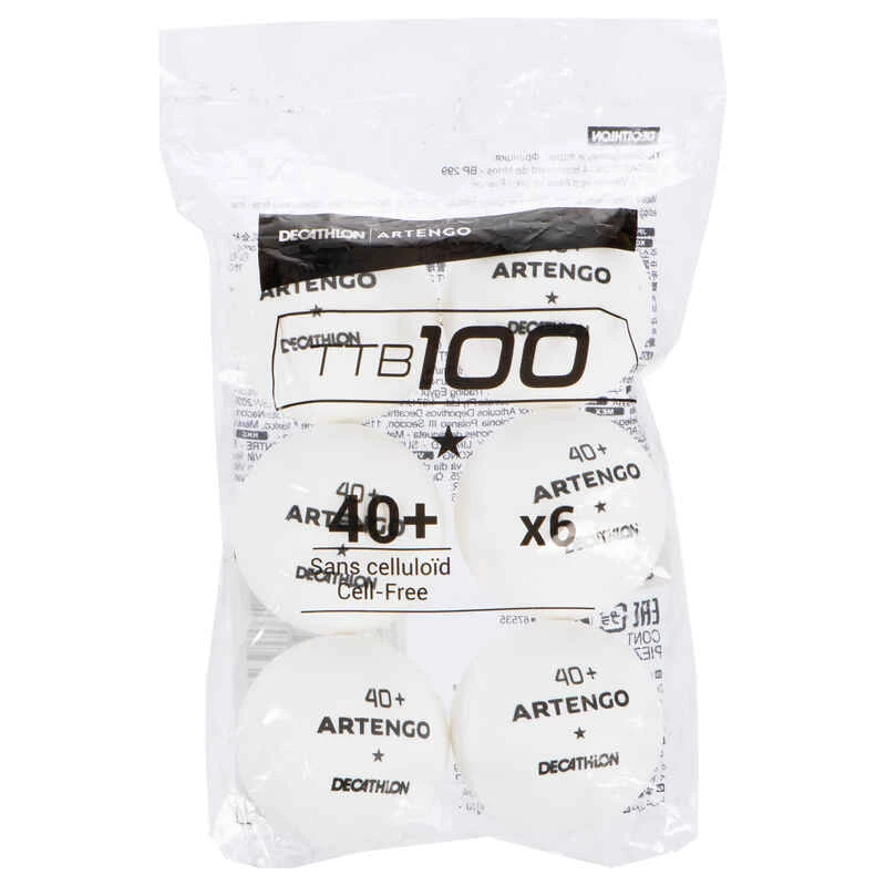 BALLES DE TENNIS DE TABLE TTB 100 1* 40+ X6 BLANCHE