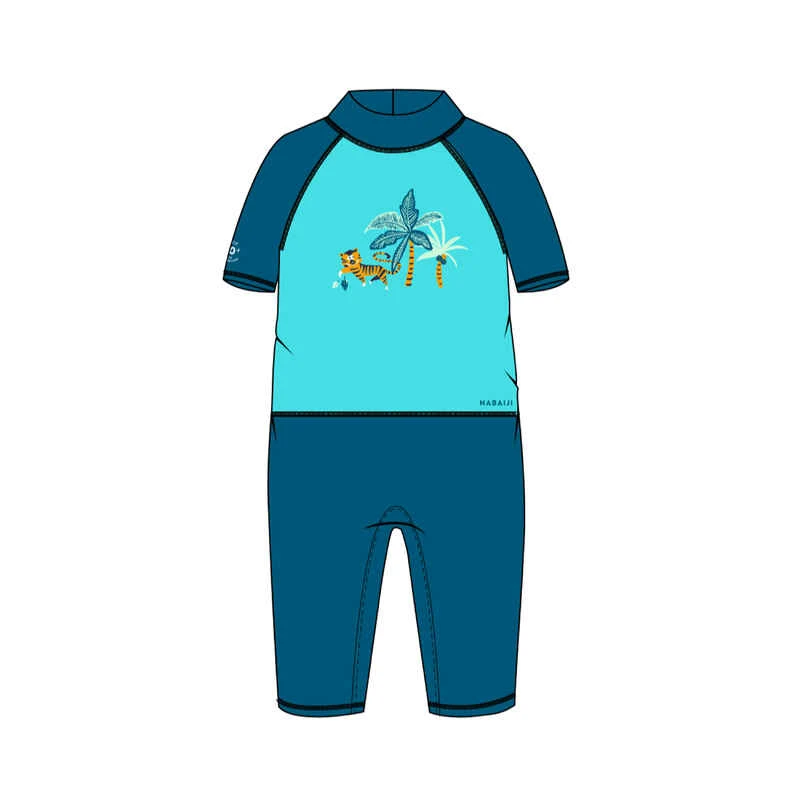 Combinaison De Natation Anti UV Bébé / Enfant Manches Courtes Bleu Imprimé Tigre