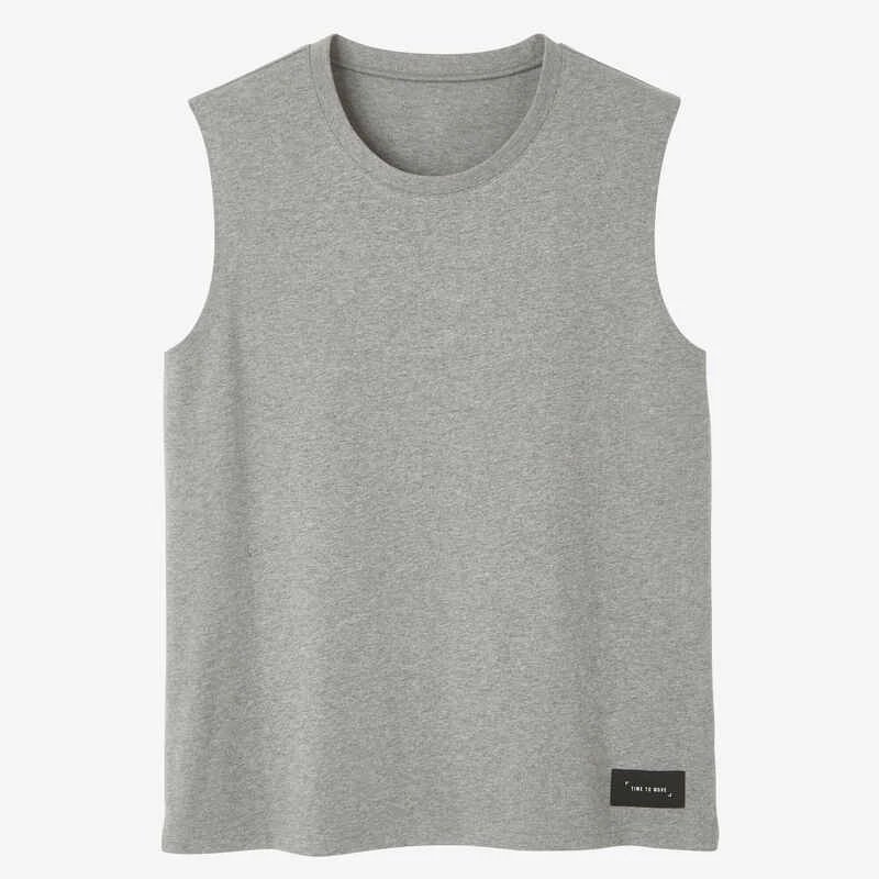 Débardeur Fitness Homme Col Rond Droit Coton – 500 Cosmeto Gris Chiné Extensible