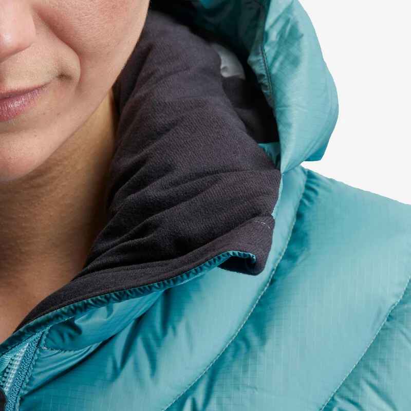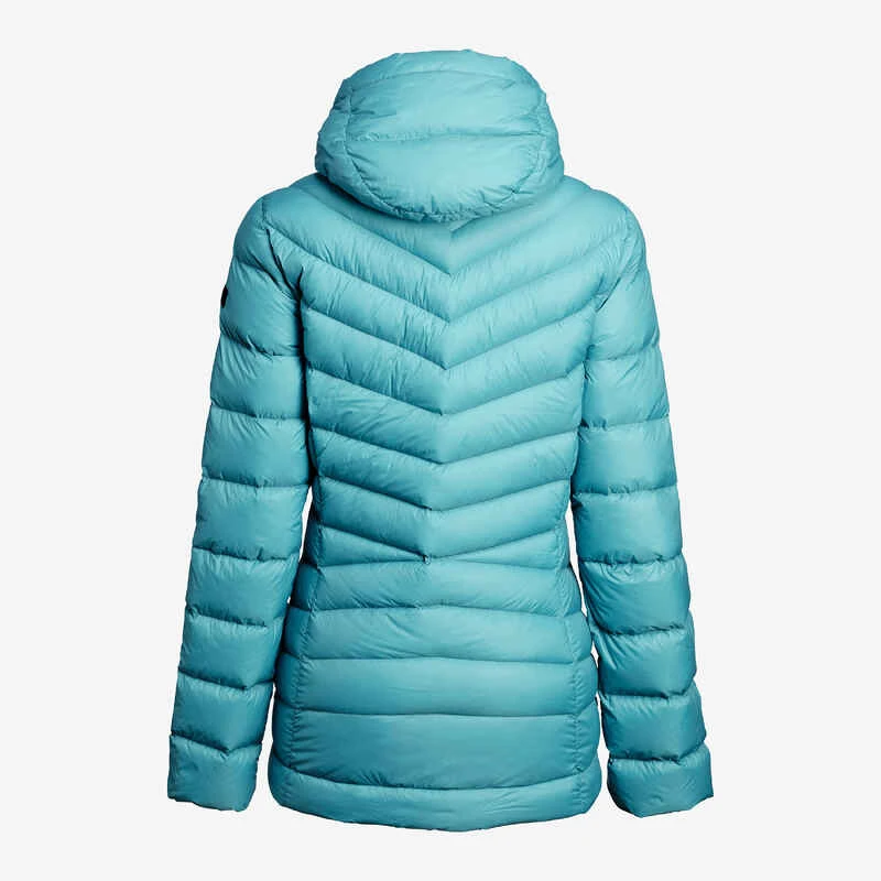 Doudoune en duvet certifié RDS avec capuche conçue par notre équipe, passionnée de trekking en montagne, pour trekker par temps froid jusqu’à -10 °C.