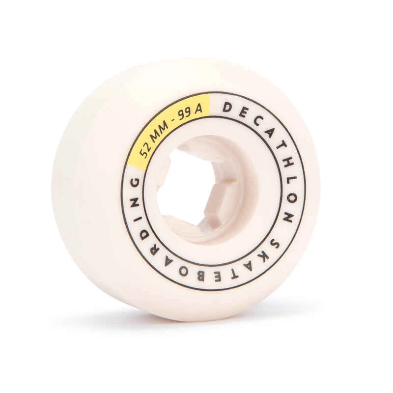 JEU DE 4 ROUES DE SKATEBOARD COULEUR IVOIRE FORME CONIQUE TAILLE 52mm, 99A.