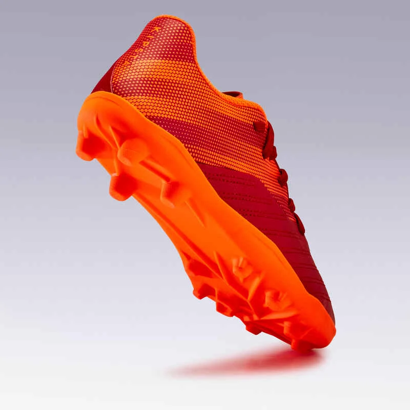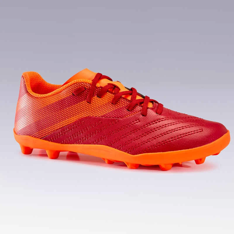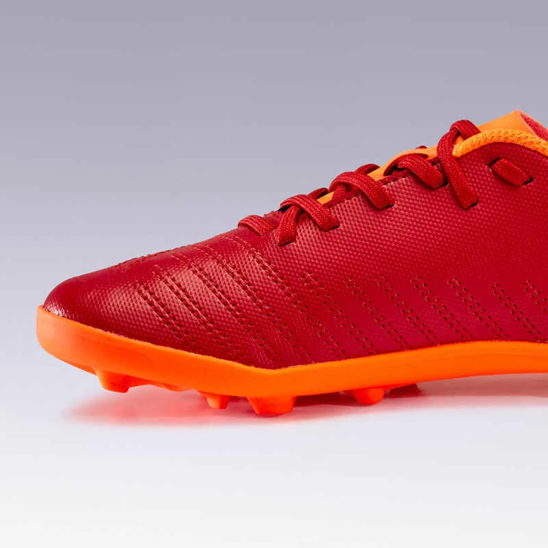 Kipsta Chaussure De Football Enfant Terrain Sec AGILITY 140 FG Lacets Bordeaux Orange