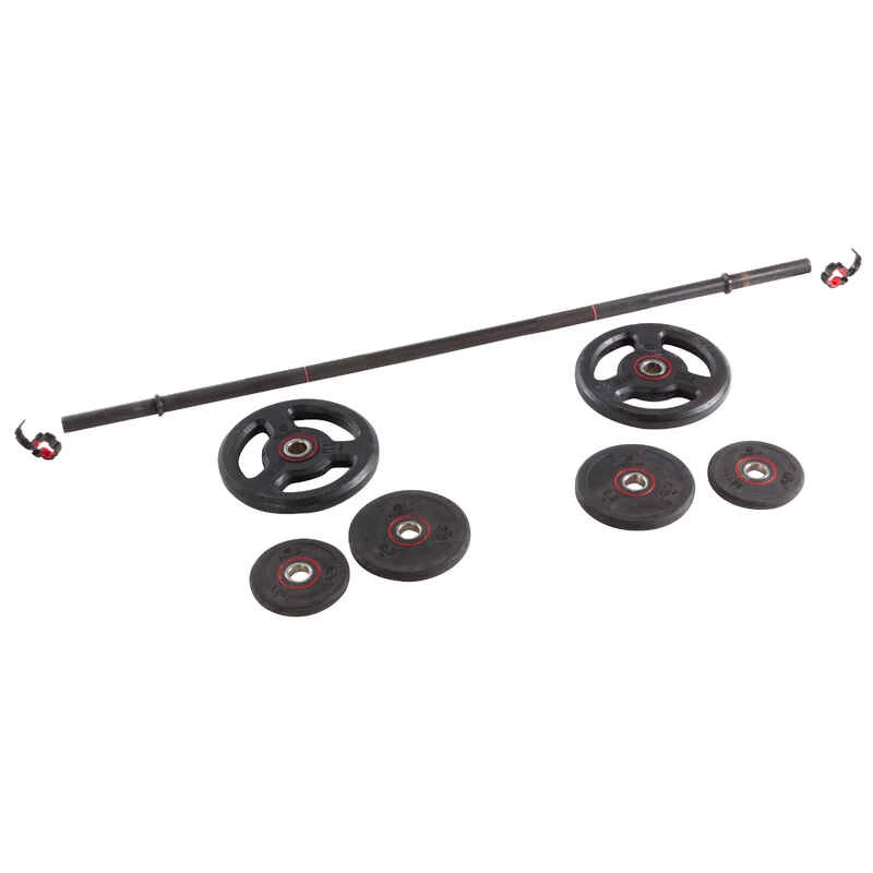 | Poids | 1 barre 2,5 kg et 2 stop-disques Disques : 2 X 5 kg & 2 X 2.5 kg & 2 X 1.25 kg |