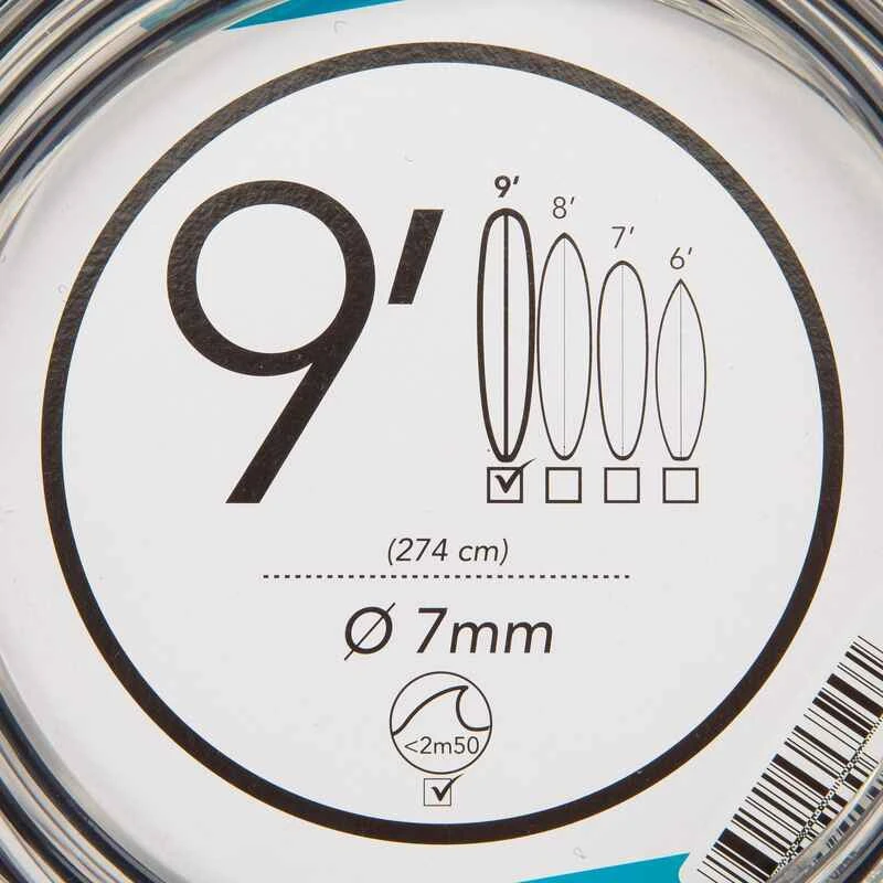 Leash Surf Longboard 9′ (275 Cm ) Diamètre 7 Mm Noir