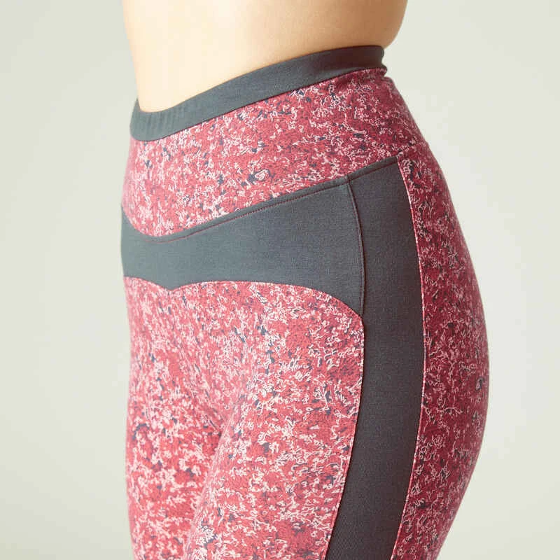 Legging Fitness Long Coton Extensible Taille Haute Femme – Rose Vif Avec Imprimé