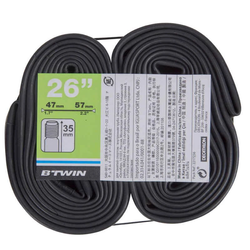 Ce lot de chambres à air conviendra pour votre pneu de diamètre 26″ pouces, de section 1,70 à 2,20 avec valve Schrader 35 mm.