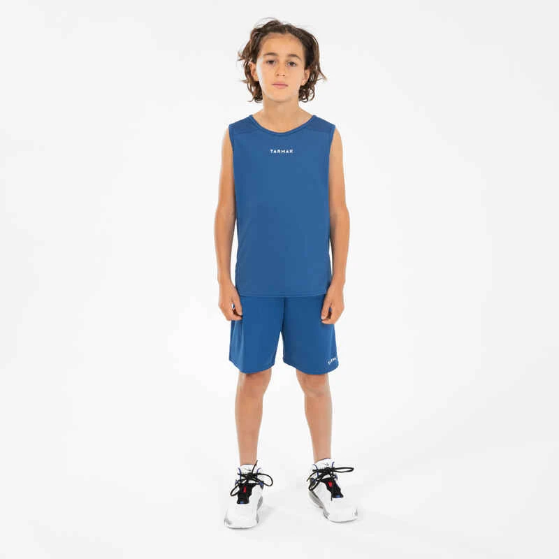 MAILLOT DE BASKETBALL SANS MANCHE ENFANT – T100 BLEU