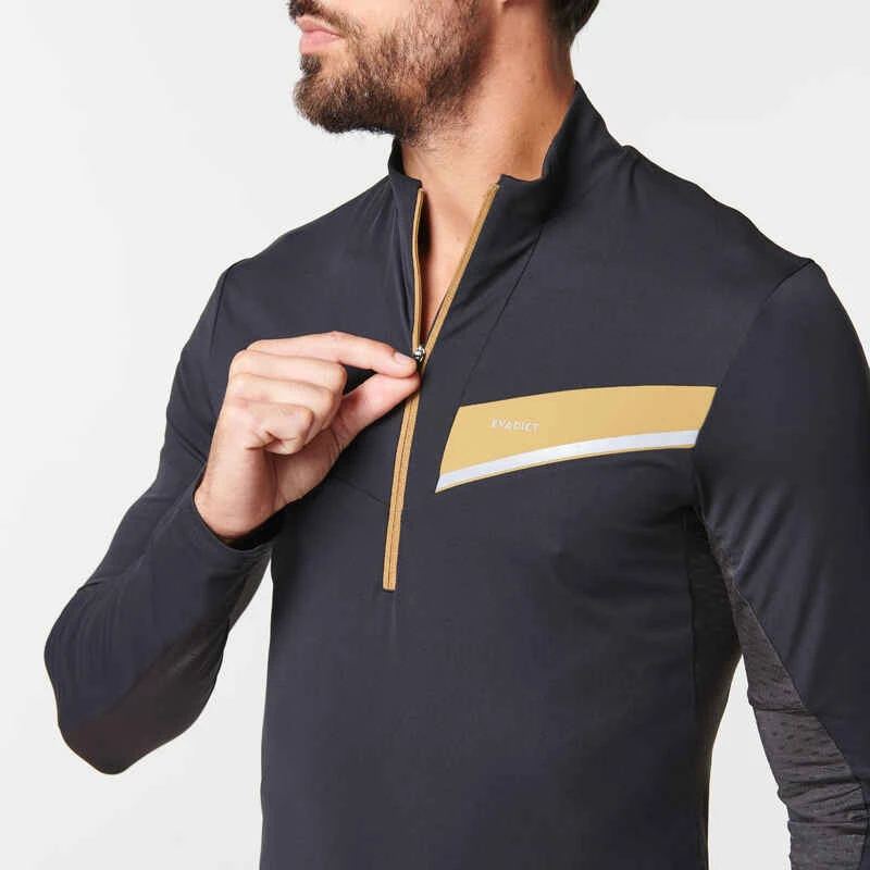 MAILLOT DE TRAIL RUNNING MANCHES LONGUES ZIP HOMME NOIR BRONZE