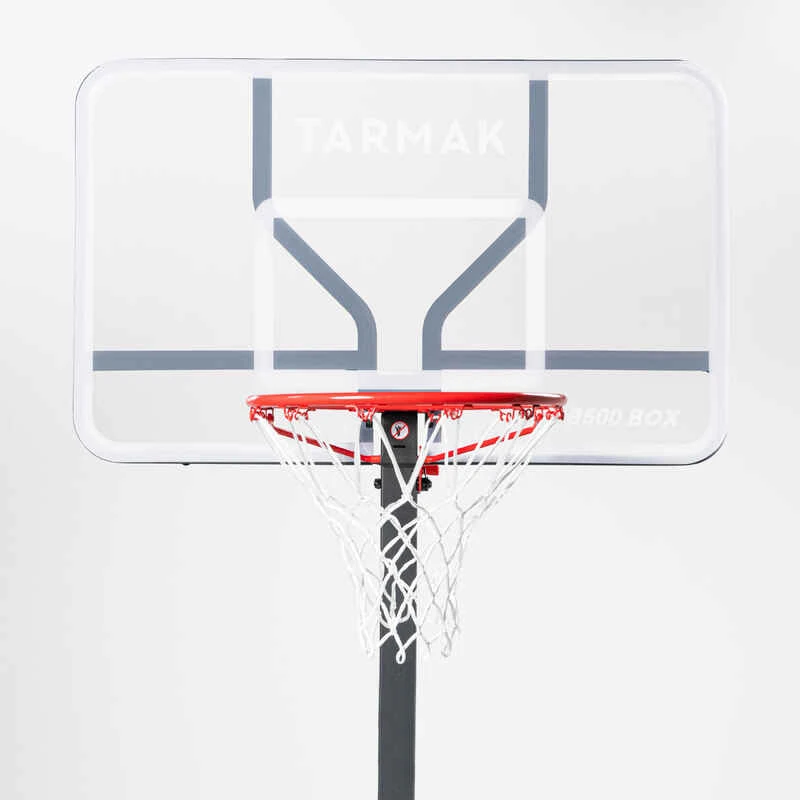 Panier de basket B500 BOX adapté aux enfants et adultes pour jouer au basketball en extérieur. Réglage à manivelle de 2,40m à 3,05m. Se plie et déplie en 1 min