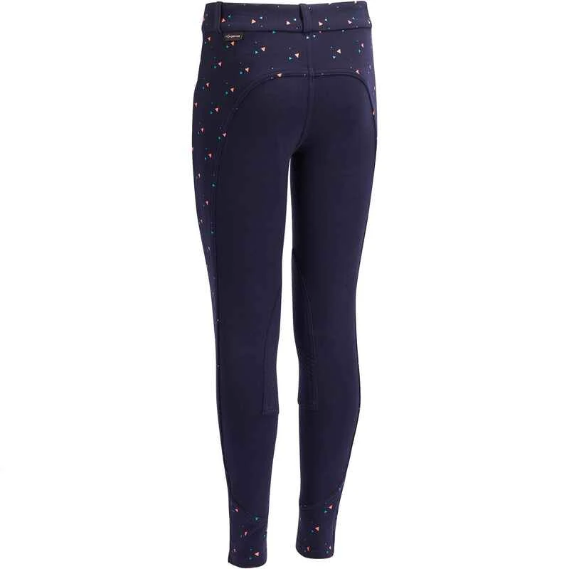 Pantalon équitation Fille 120 PRINT Marine à Points Rose