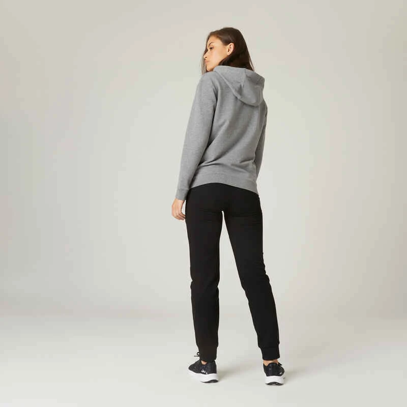 Pantalon Jogging Fitness Femme Coton Coupe Droite Avec Poche – 500 Noir
