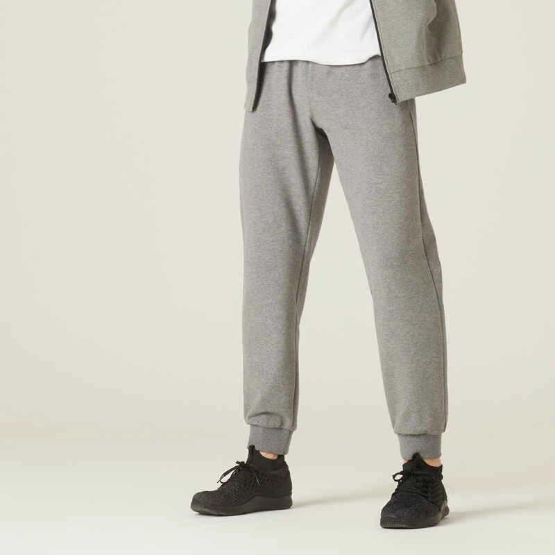 Pantalon Jogging Fitness Homme Coton Majoritaire Coupe Droite – 500 Gris