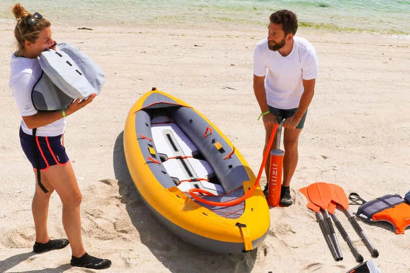 Conçu pour gonfler et dégonfler des canoë-kayak jusqu’à 8 PSI grâce à sa fonction double action.