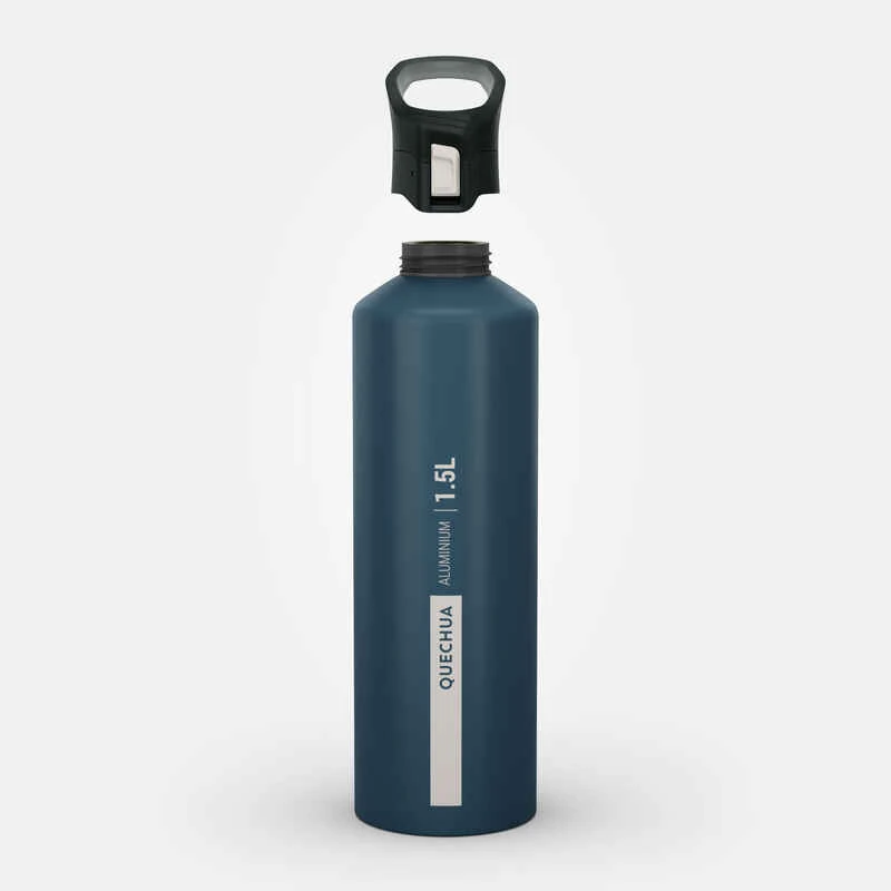 Quechua Gourde Randonnée MH500 Bouchon Ouverture Rapide 1,5 Litre Aluminium Bleu