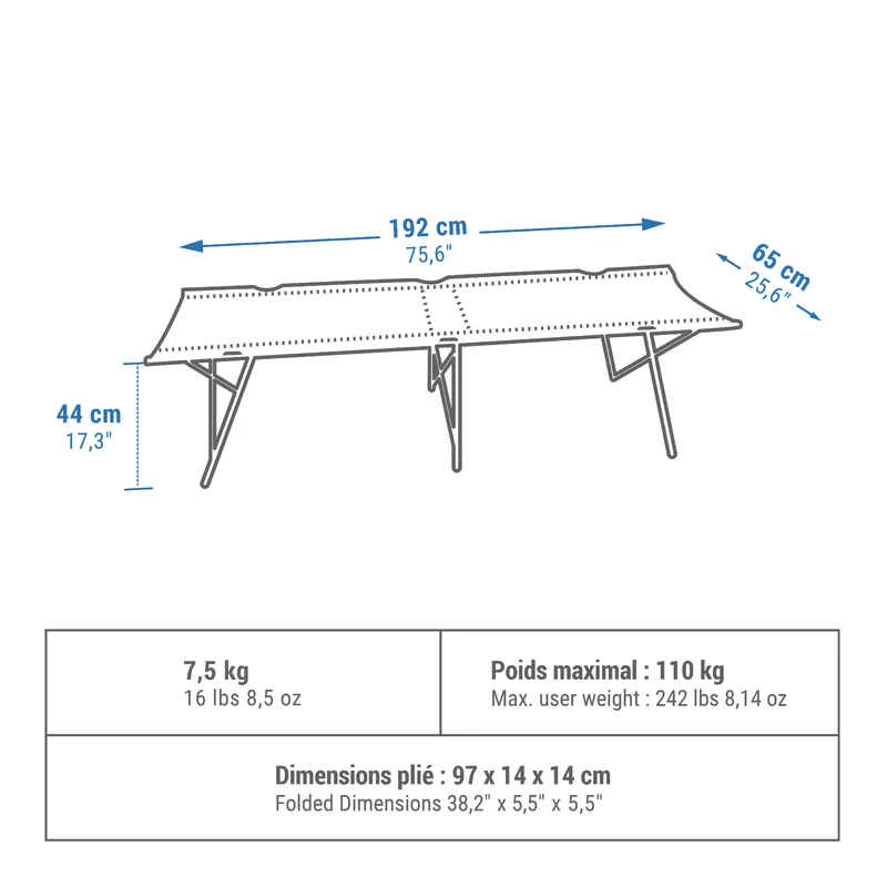 Quechua LIT DE CAMP POUR LE CAMPING – CAMP BED SECOND 65 CM – 1 PERSONNE