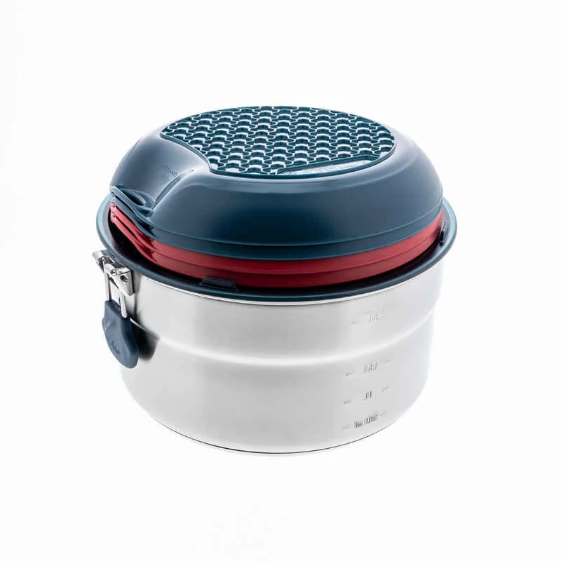 Quechua Popote Camp Du Randonneur MH500 Inox + Revêtement Anti-adhésif 4 Personnes 3,5L