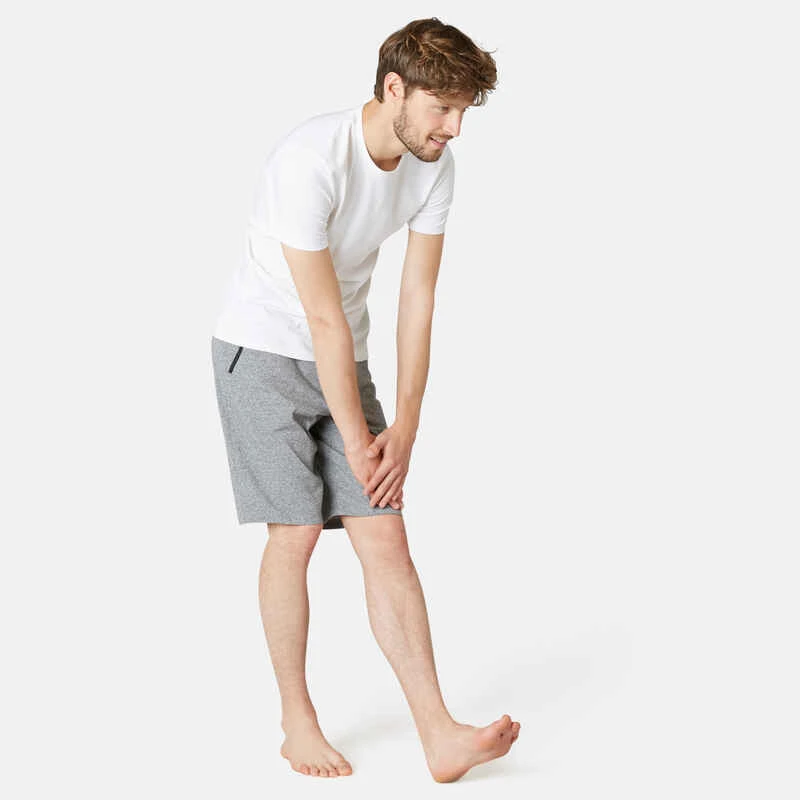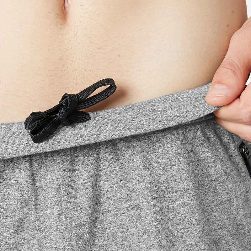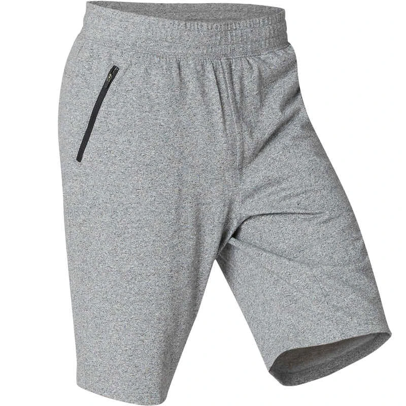Short Coton Extensible Fitness Long Avec Poches Zippées Slim Gris