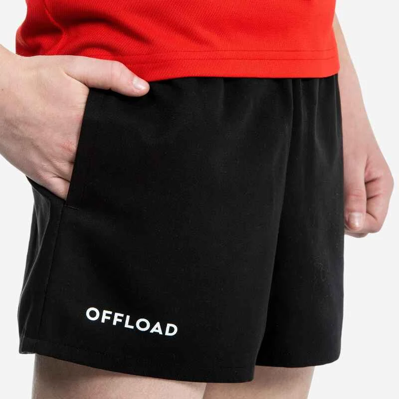 Short De Rugby R100 Avec Poches Enfant Noir