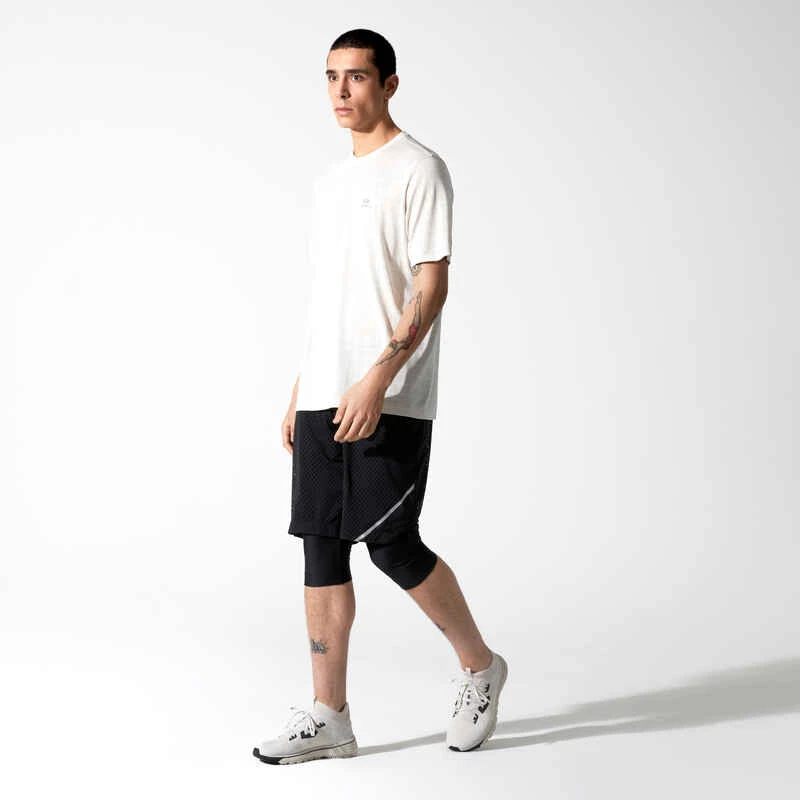 SHORT LONG 2 EN 1 DE RUNNING HOMME RESPIRANT KALENJI DRY + BREATH NOIR
