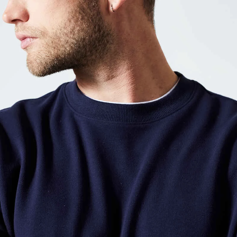 Éco-conçu avec 28% de coton recyclé, ce sweat col rond pour homme vous enveloppe de douceur après une séance de sport !