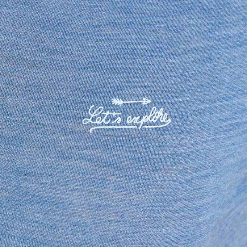 T-shirt De Trek Voyage – Manches Courtes – Laine Mérinos TRAVEL 100 Bleu Femme