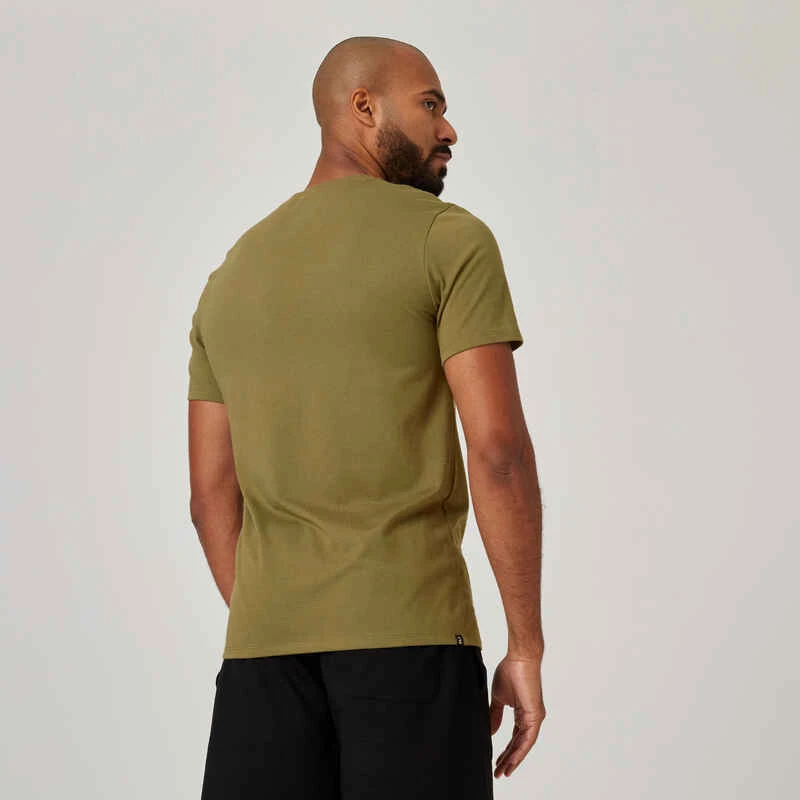 T-shirt Fitness Manches Courtes Ajusté Col Rond Coton Homme – Kaki Avec Imprimé
