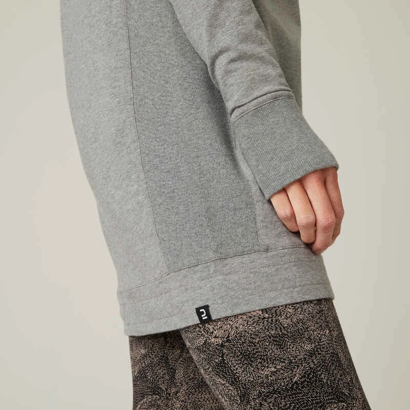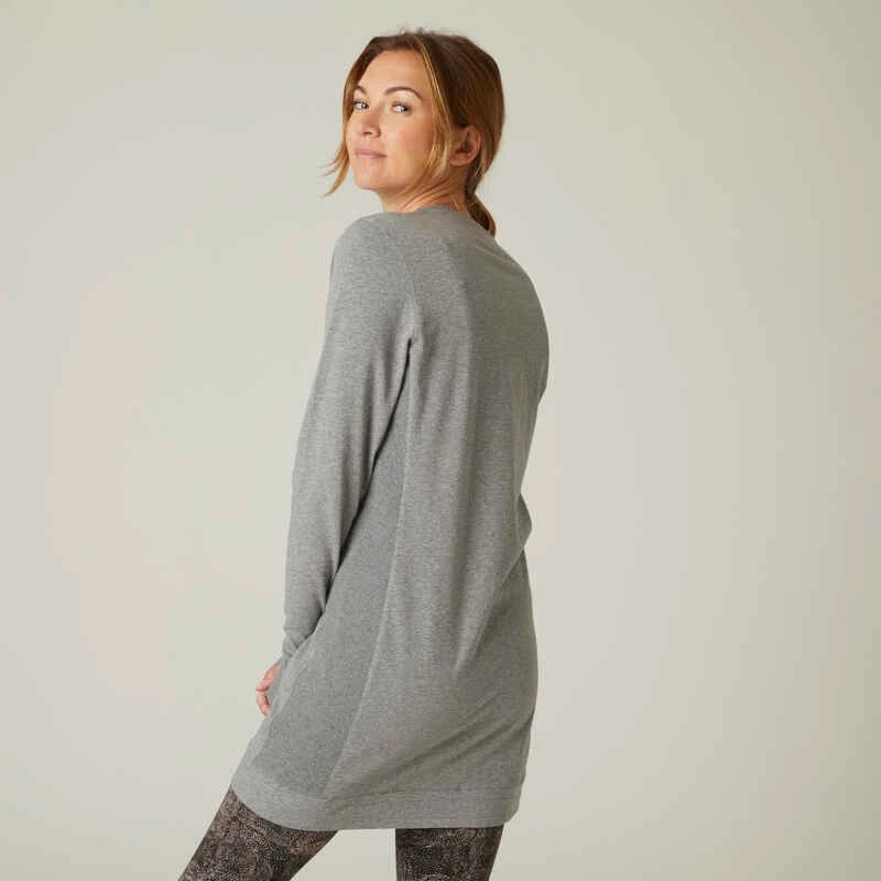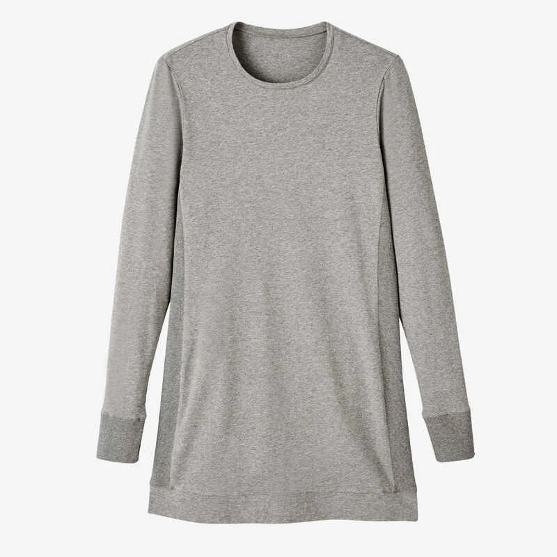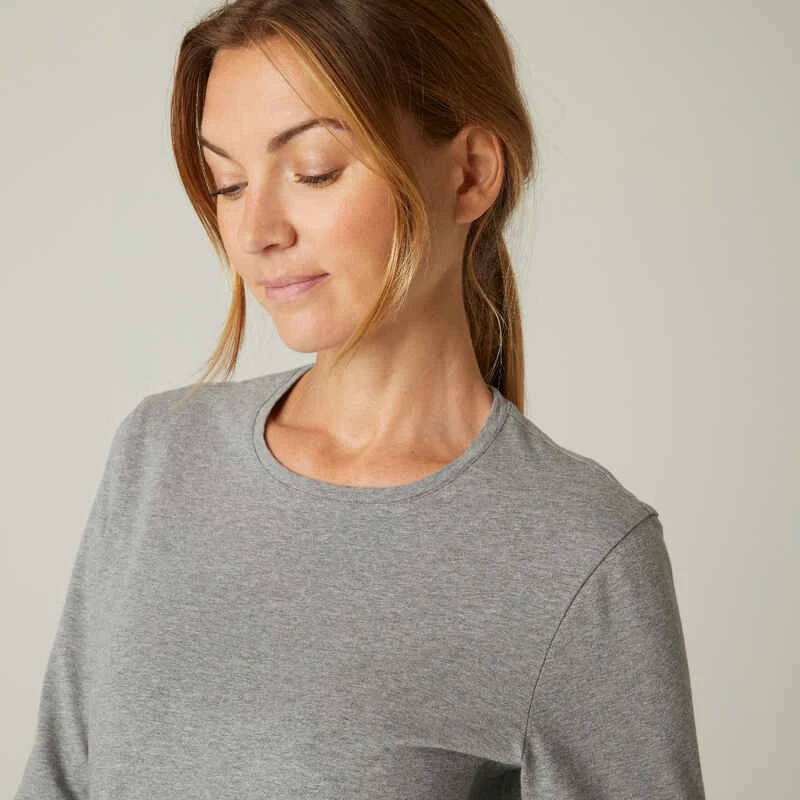 T-shirt Fitness Manches Longues Slim Coton Extensible Col Rond Femme Gris