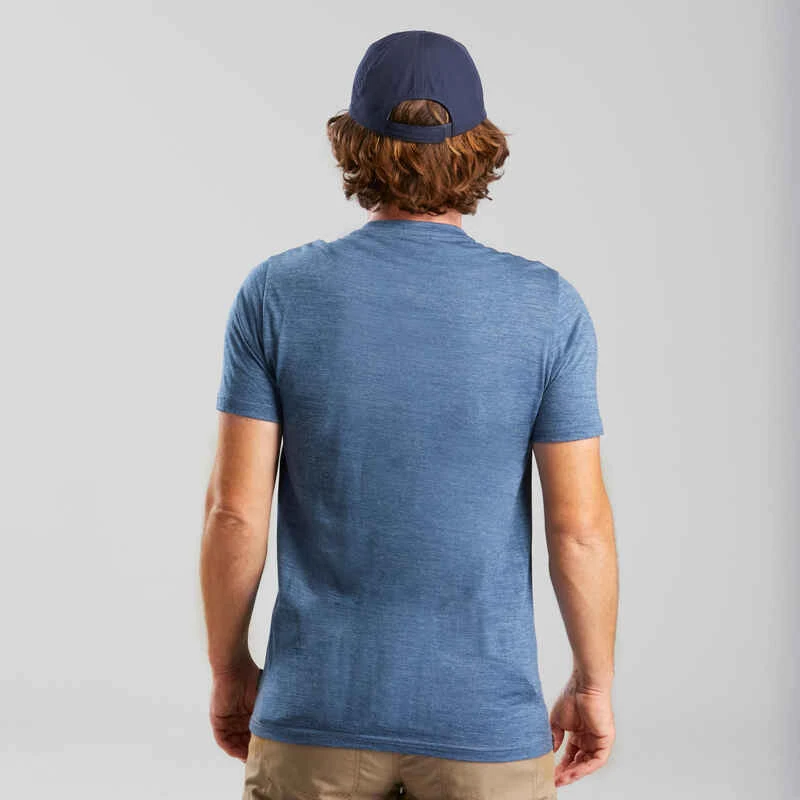 T-shirt Laine Mérinos De Trek Voyage – TRAVEL 100 Bleu Homme