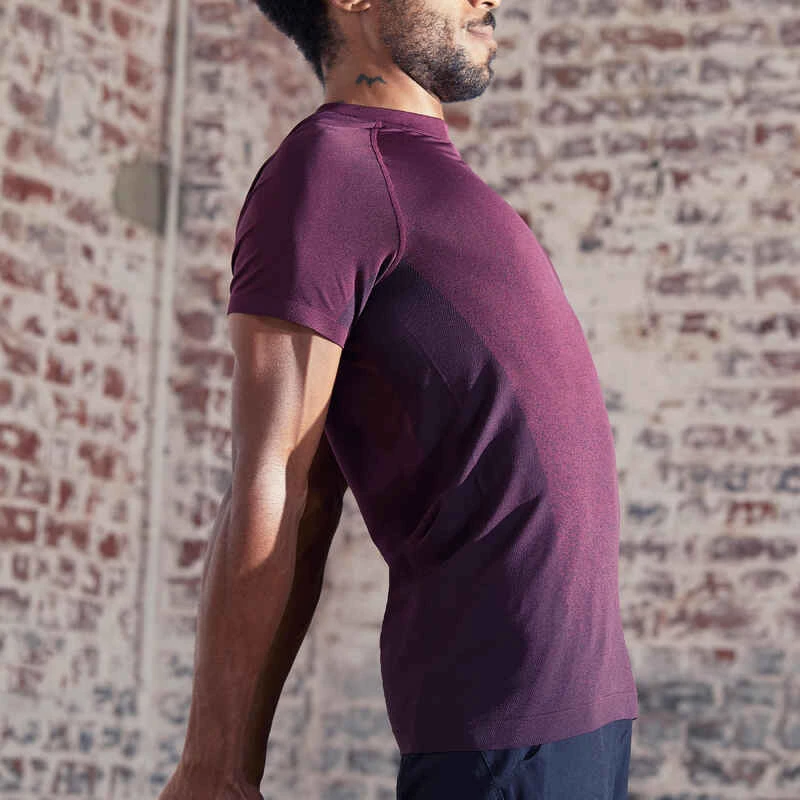 T SHIRT MANCHES COURTES SANS COUTURE YOGA DYNAMIQUE HOMME BORDEAUX