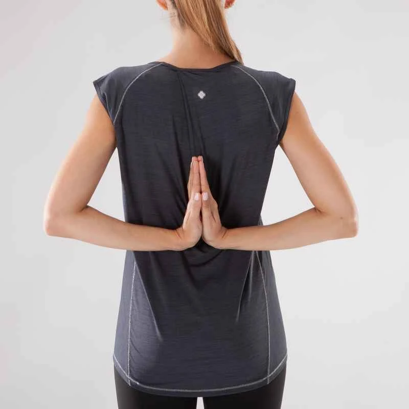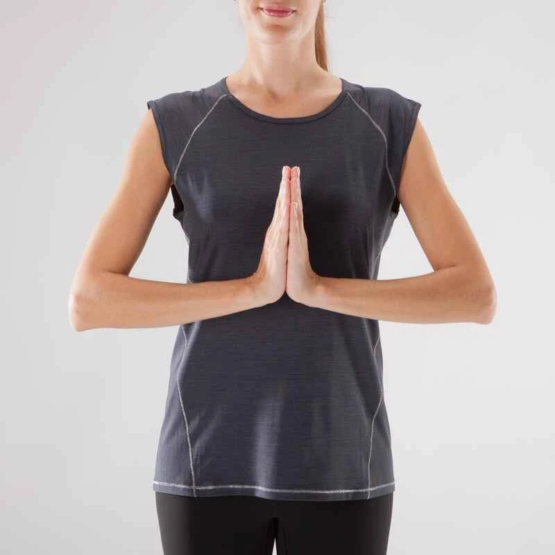 T-Shirt Sans Manches Yoga Femme Noir Chiné