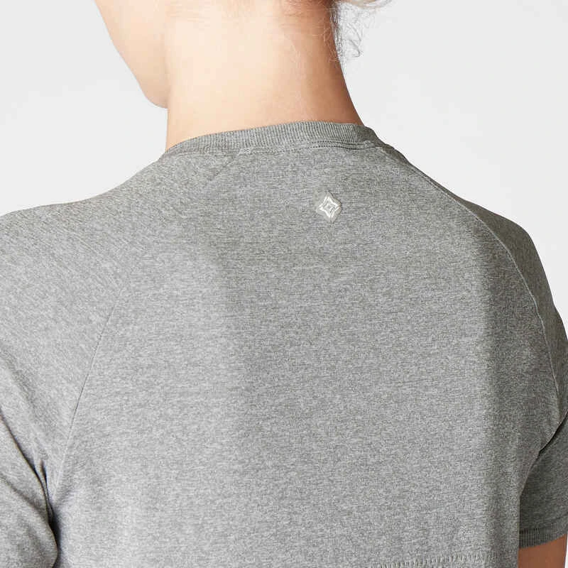 T-SHIRT YOGA DYNAMIQUE FEMME SANS COUTURES GRIS CHINE