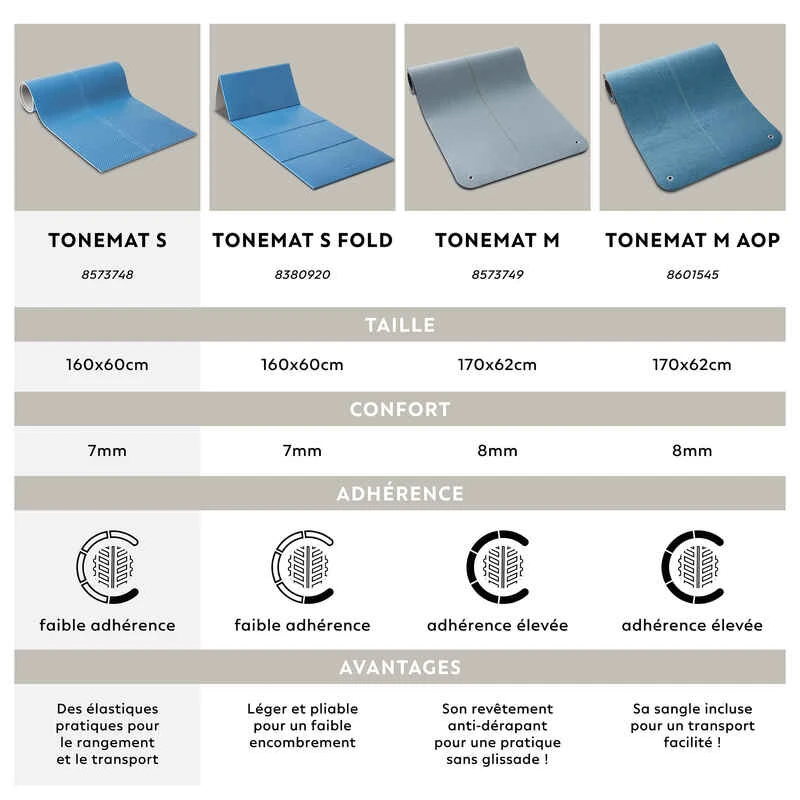 Tapis De Sol Pilates 160cm X 60cm X 7mm – Tonemat S Bleu