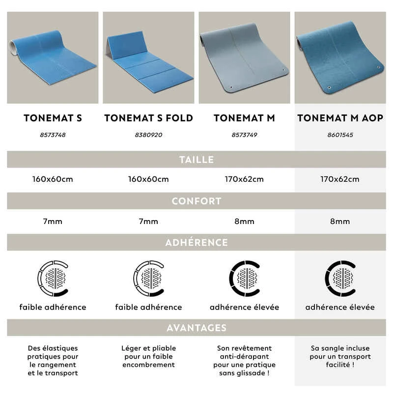 Tapis De Sol Pilates 170 Cm X 62 Cm X 8 Mm – Tonemat M Bleu