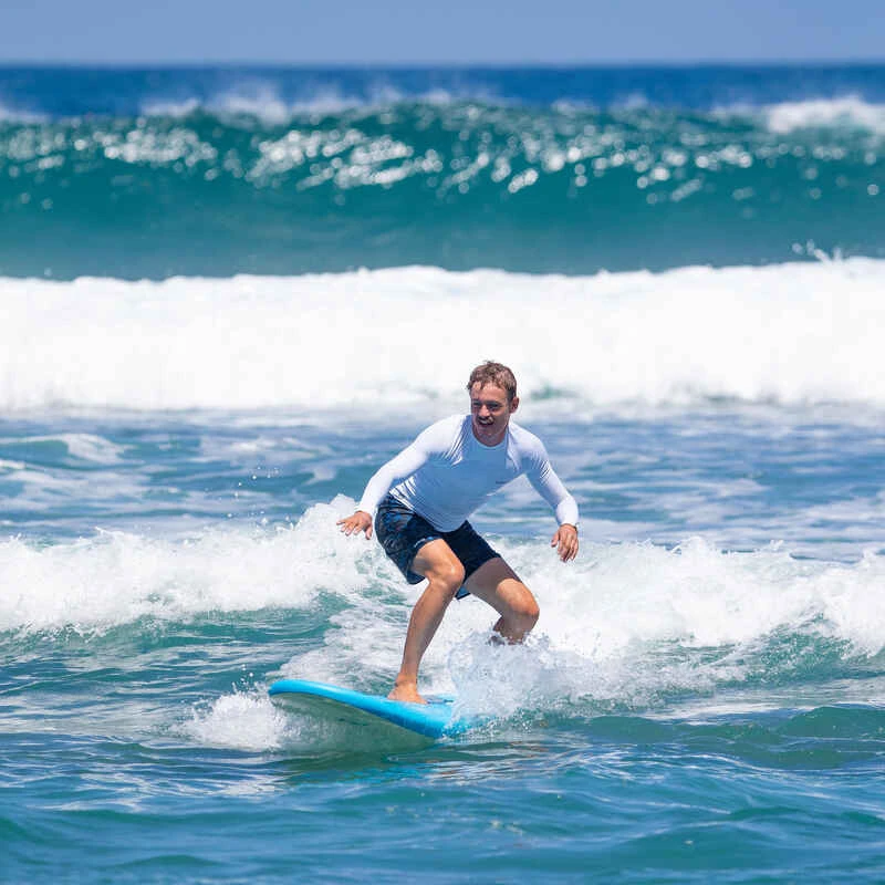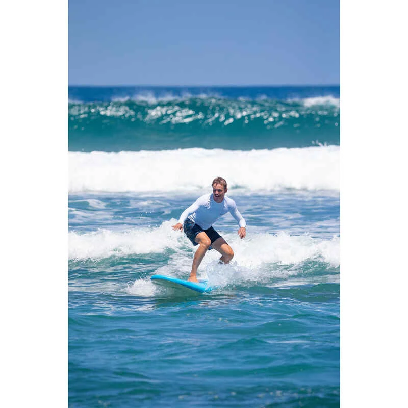Notre équipe de concepteurs a développé un tee-shirt anti UV particulièrement adapté à la pratique du surf en eau chaude, pour des sessions de moins d’une heure