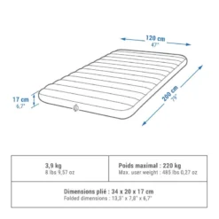 Quechua MATELAS GONFLABLE DE CAMPING – AIR COMFORT 120 CM – 2 PERSONNES