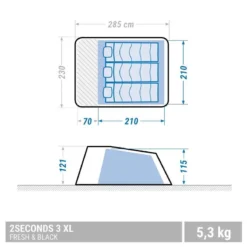 Quechua Tente De Camping – 2 SECONDS XL – 3 Places – Fresh & Black
