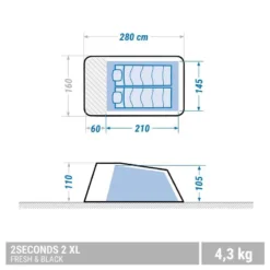 Quechua Tente De Camping – 2 SECONDS XL – 2 Places – Fresh & Black