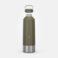 Quechua Gourde Randonnée 500 Bouchon Ouverture Rapide 1,5 Litre Aluminium Noir