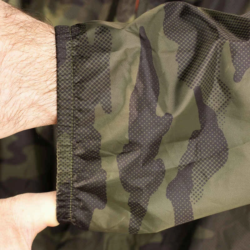 VESTE CHASSE IMPERMÉABLE LEGERE CAMO VERTE 100